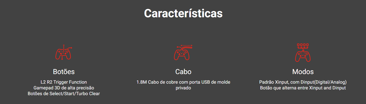 • Botão dedicado para alternância entre XInput e DInput