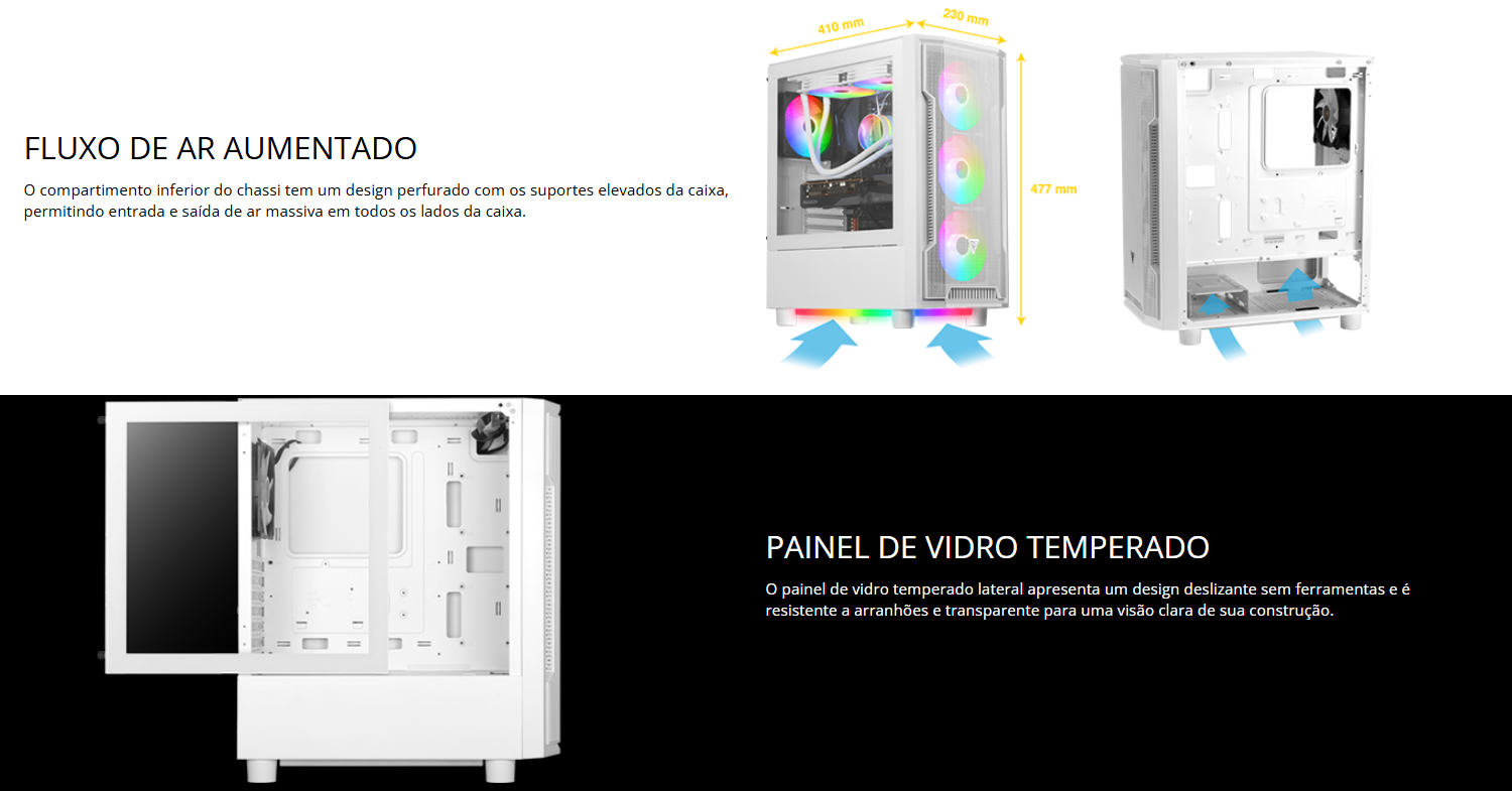 • 1x SSD 2,5″ + 1x HDD 3,5″ (gaiola para HDD)
