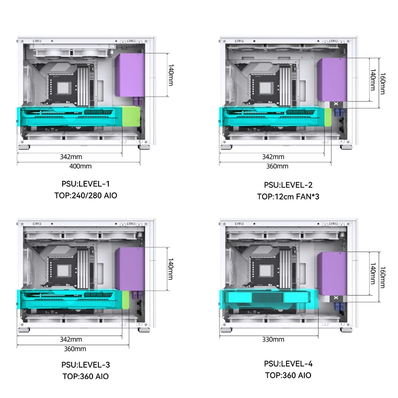 • Superior: 3× 120mm ou 2× 140mm