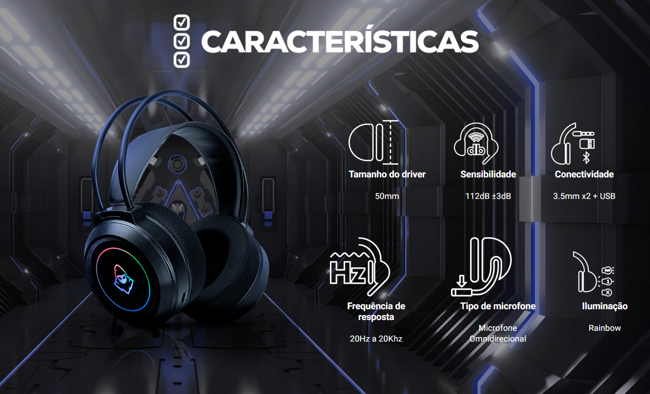 • 2× Conectores 3,5mm (áudio + microfone)