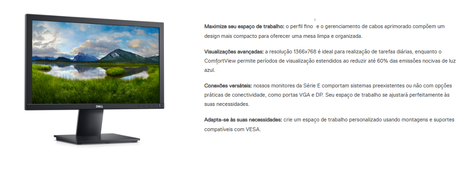 Monitor Dell 18.5 Hd, Vga E Displayport, Vesa, Ajuste De Inclinação, Antirreflexo - Preto - E1920h