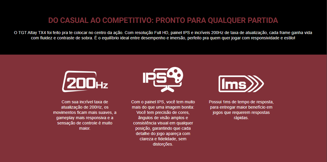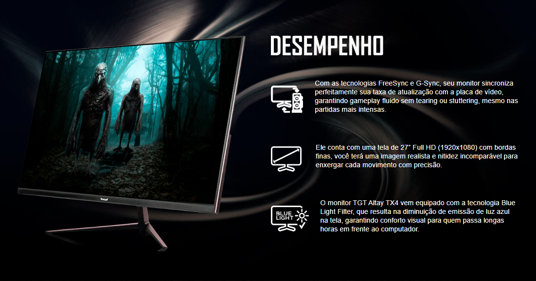 Monitor Gamer Tgt Altay Tx4, 27 Pol, Ips, Fhd, 1Ms, 200Hz, Freesync, Hdmi/Dp, Tgt-Attx4-Bl01