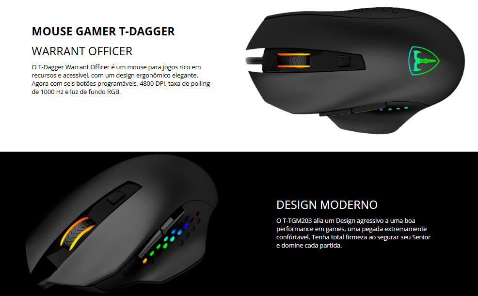 • 1 x Mouse Gamer T-Dagger Warrant Officer, RGB, 4800 DPI, 6 Botões