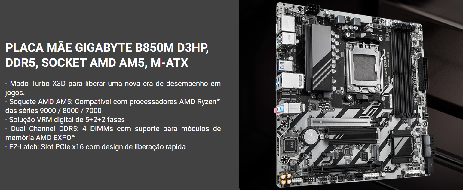 Placa-Mãe: Gigabyte B850M-D3HP