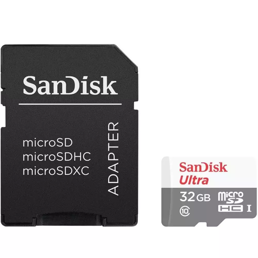 • Cartão De Memória Micro SD Sandisk Ultra 32GB, Classe 10, C/ Adaptador - Sdsqunr-032g-gn3ma