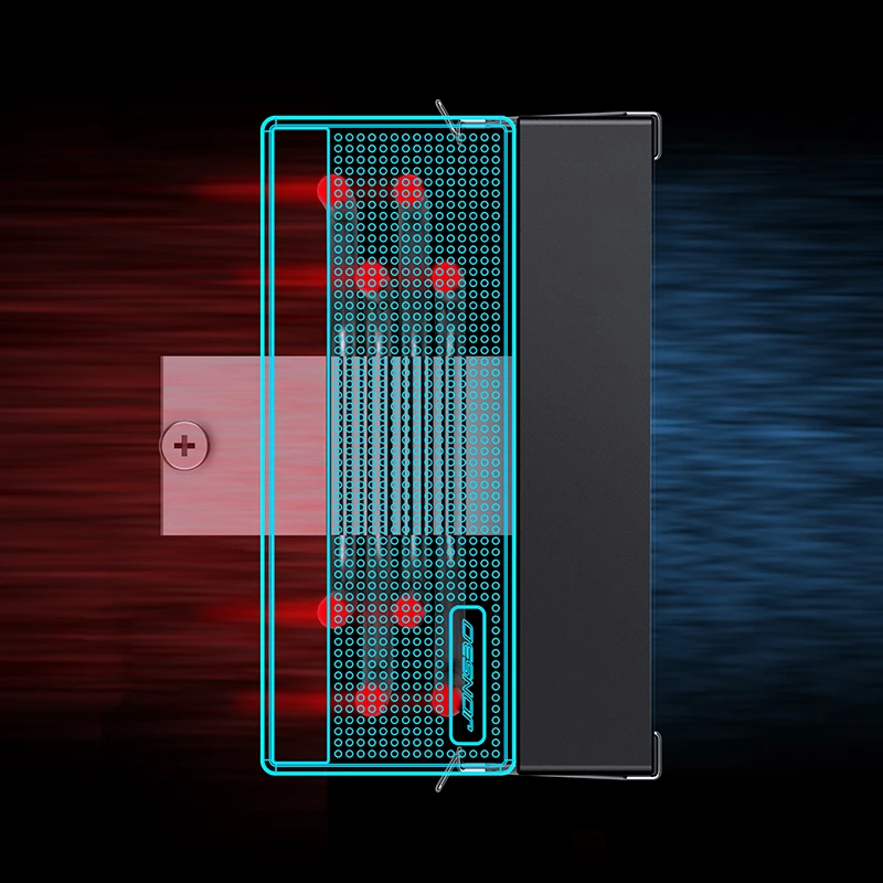 O topo do dissipador não é apenas funcional, é uma peça de arte. Com o efeito de Espelho Infinito sincronizável via ARGB 5V, o CB40 transforma o interior do seu gabinete, entregando uma profundidade visual única e iluminação vibrante.
