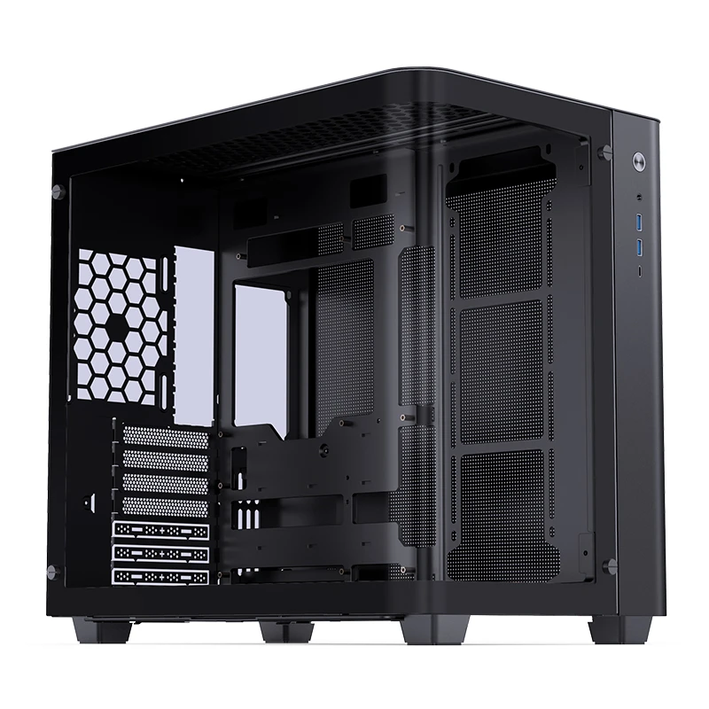 Esqueça as colunas metálicas que bloqueiam a visão. O vidro curvo do Jonsbo TK-3 oferece uma transição contínua, permitindo que você aprecie cada detalhe do seu hardware de qualquer ângulo. Ideal para quem investe em peças com RGB personalizado e quer destaque total.