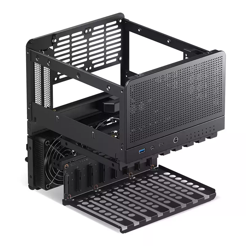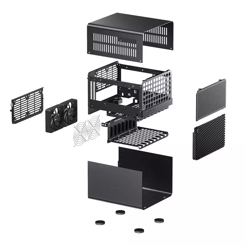Vem equipado com duas ventoinhas de 100 mm na parte inferior traseira como configuração padrão, com a opção de adicionar duas ventoinhas adicionais de 80 mm na parte superior traseira. O gabinete oferece dois slots de expansão, suporta placas gráficas de até 250 mm de comprimento, acomoda coolers de CPU com altura máxima de 130 mm e é compatível com fontes de alimentação SFX de até 105 mm de comprimento.