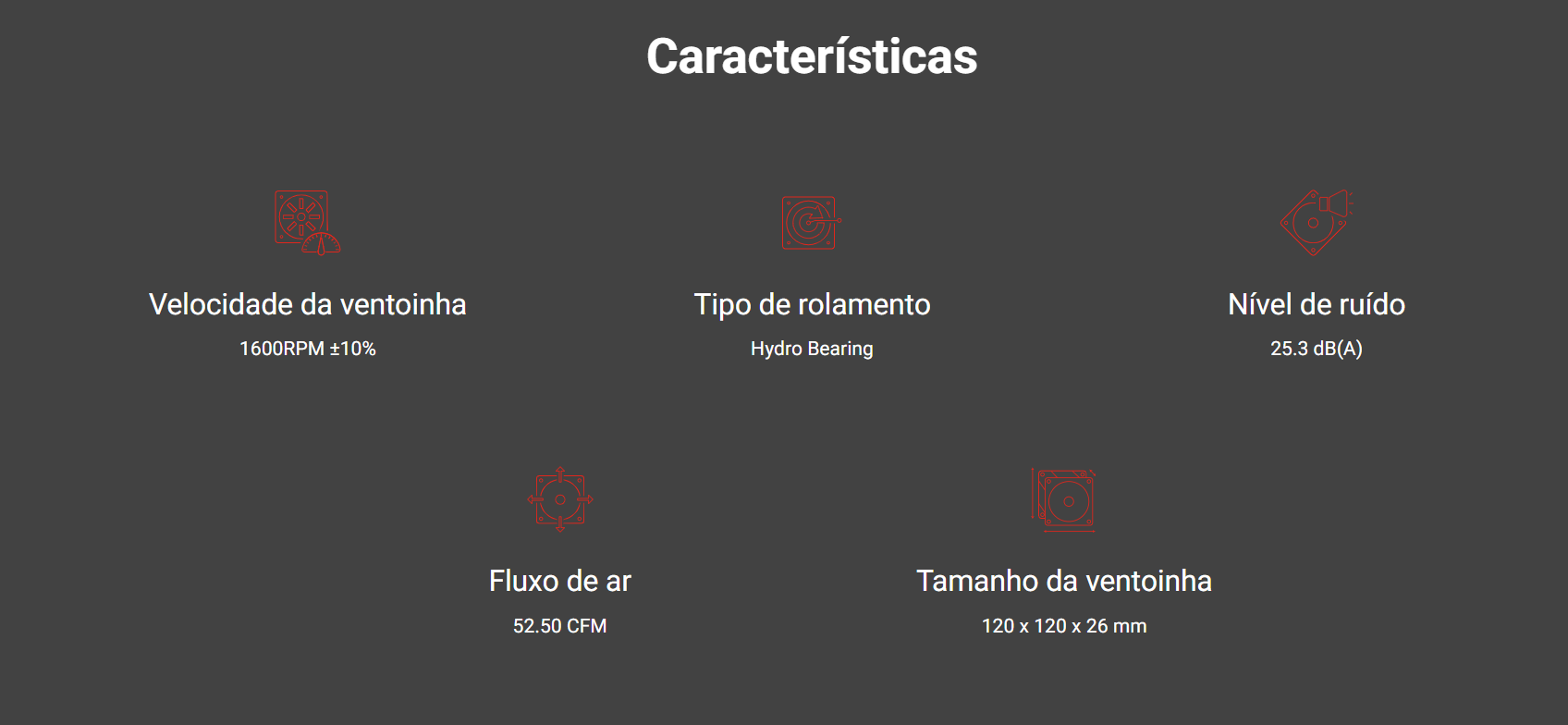 • Dimensões do fan: 120 × 120 × 26 mm