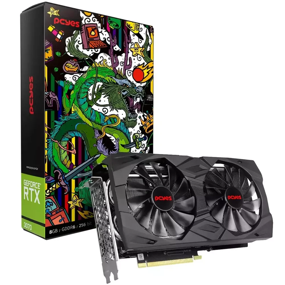 A Placa de Vídeo PCYES GeForce RTX 3070 Gaming Pro Graffiti Series é uma GPU de alto desempenho baseada na arquitetura NVIDIA Ampere, indicada para jogos em alta qualidade, criação de conteúdo, produtividade gráfica e aplicações aceleradas por GPU. Com 8GB de memória GDDR6, barramento de 256-bit e suporte a Ray Tracing e NVIDIA DLSS, entrega excelente desempenho para setups gamer e profissionais.