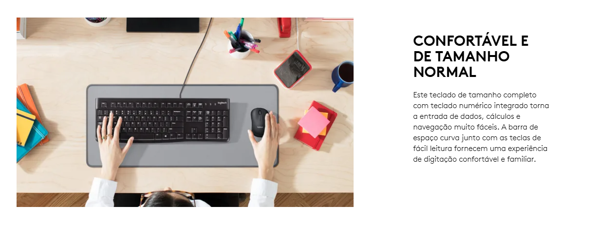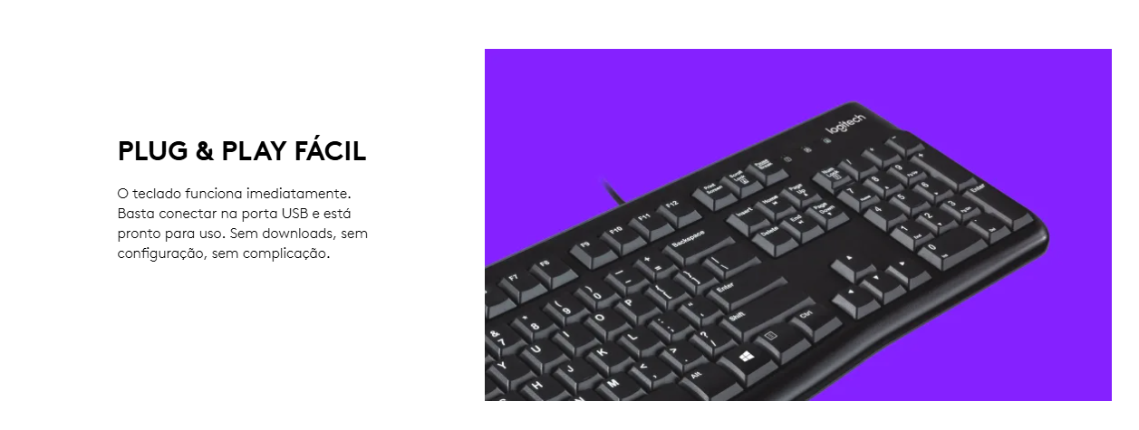 - Digitação agradável: Suas mãos desfrutarão de teclas de perfil baixo e silenciosas, além de um layout com teclas F em tamanho normal e teclado numérico.