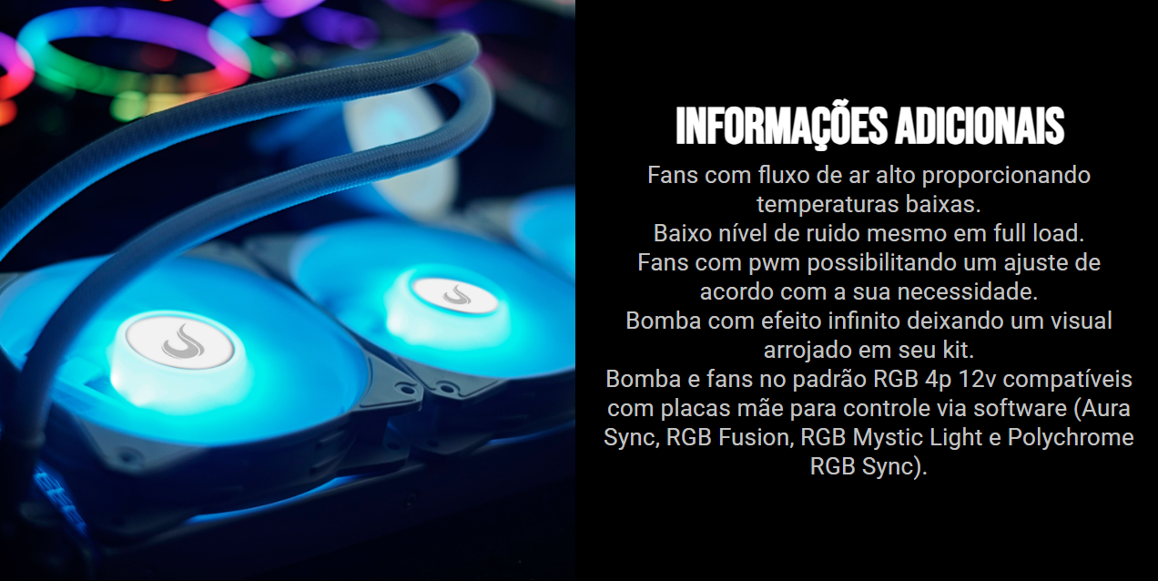*Compatível apenas com placas mãe com entrada RGB 12v